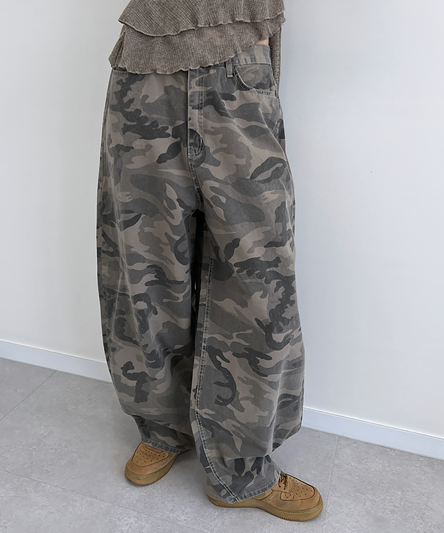 [1ONE/오늘출발/M사이즈] 벌룬핏 카모 밀리터리 와이드 코튼 팬츠