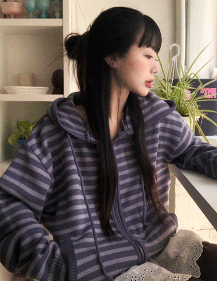 [루즈핏/유니크] 조이밍 스트라이프 니트 후드 가디건