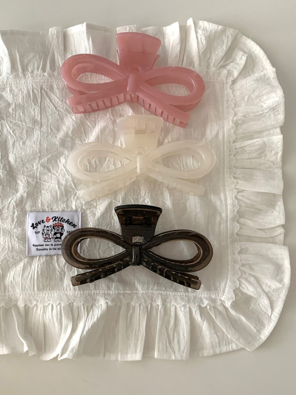 [무배♥/당일배송] 코튼 리본 아크릴 11cm 빅사이즈 올림머리 헤어 집게핀 3color