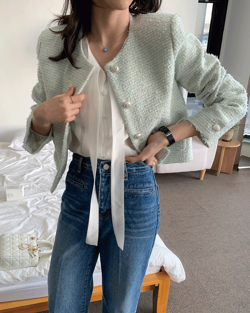 로맨틱 세미크롭 하객룩 트위드 자켓