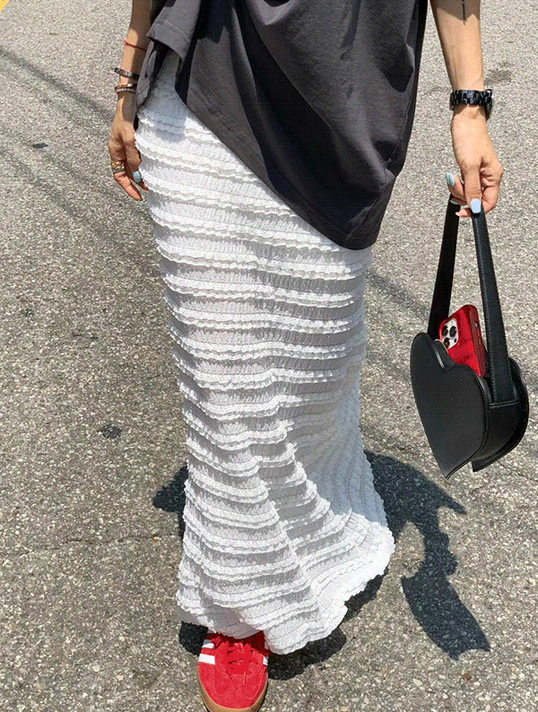 [만능코디👍] 샤롱드 레이스 프릴 스커트 SK6405봄 간절기 여름 밴딩 롱 맥시 러플 너플 샤샤 캉캉 티어드 방수 흠뻑쇼 A라인 슬림핏 벚꽃룩 나들이룩 페스티벌룩 축제룩 여행 휴가룩 동남아 휴양지룩