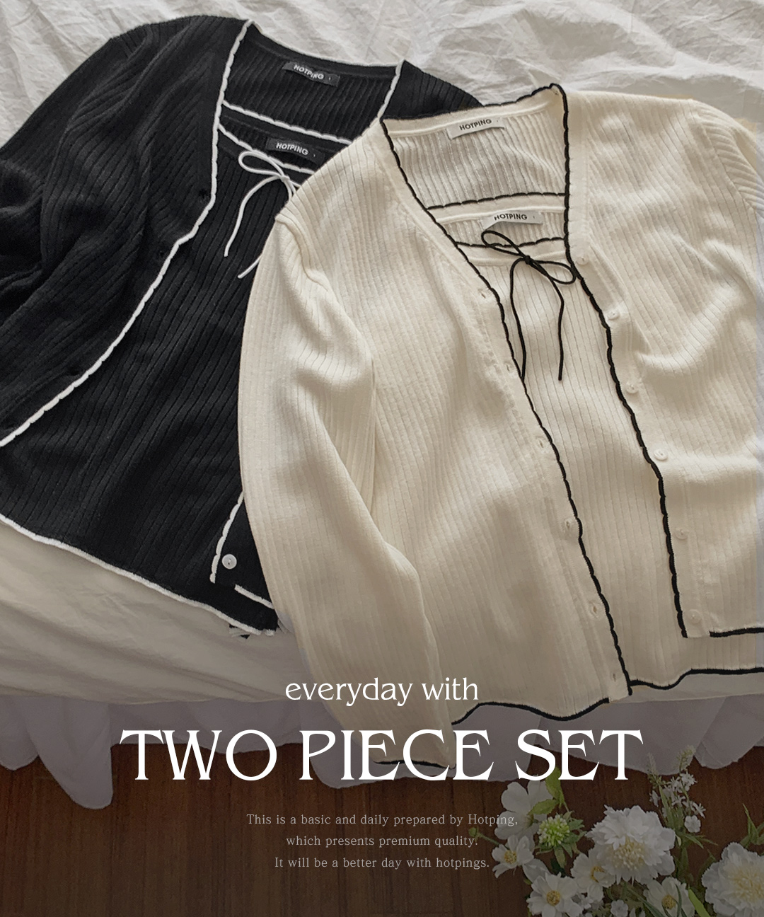 [활용만점/데일리/여리핏][MADE] 루이나 배색라인 가디건+리본나시 니트세트set (44~110) (빅사이즈나시-빅사이즈가디건-투피스세트-물결짜임베이직핏-셋업-체형커버-군살커버)