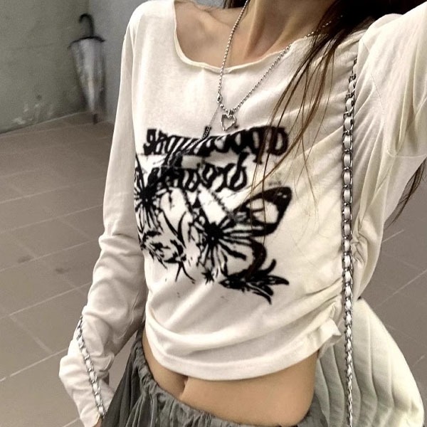 르베 프린팅 크롭 티셔츠