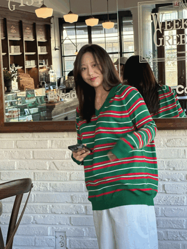 1834 브이넥 오버핏 스트라이프 카라 니트[2color/44-88]