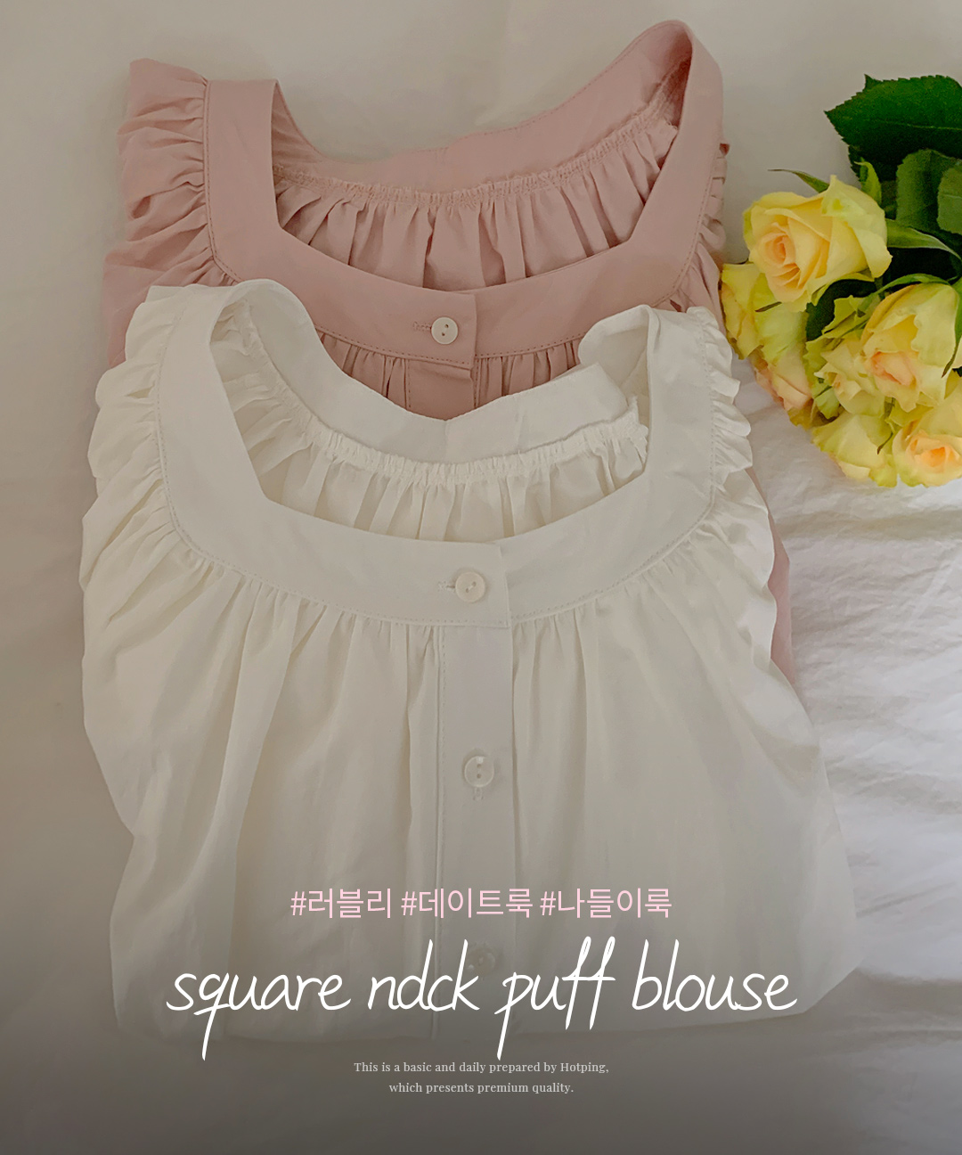 [러블리무드❤️/아방핏][MADE] 세르망 스퀘어넥 셔링 퍼프 블라우스 (44~110) (빅사이즈스퀘어넥블라우스-잔셔링블라우스-긴팔블라우스-퍼프소매블라우스-체형커버-군살커버)
