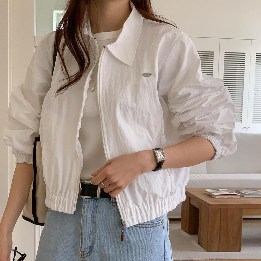 여자 바스락 봄아우터자켓 밴딩 카라넥 바람막이 점퍼
