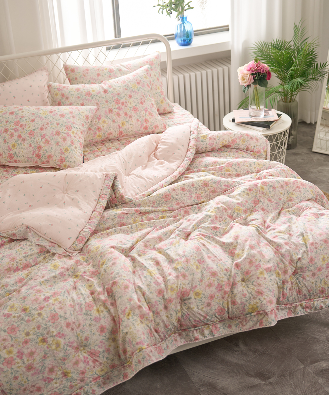 국산 모달 100% 핑크 플라워패턴 레이스 봄 사계절 차렵이불