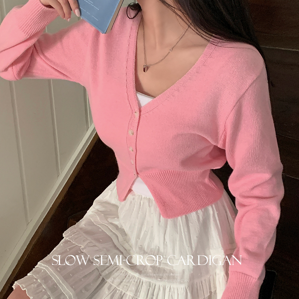 *고급[태리코튼30%] 슬로우 세미크롭 브이넥 니트 가디건