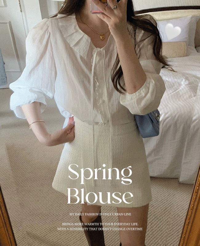 핀턱 레이스 스트랩 프릴카라 블라우스