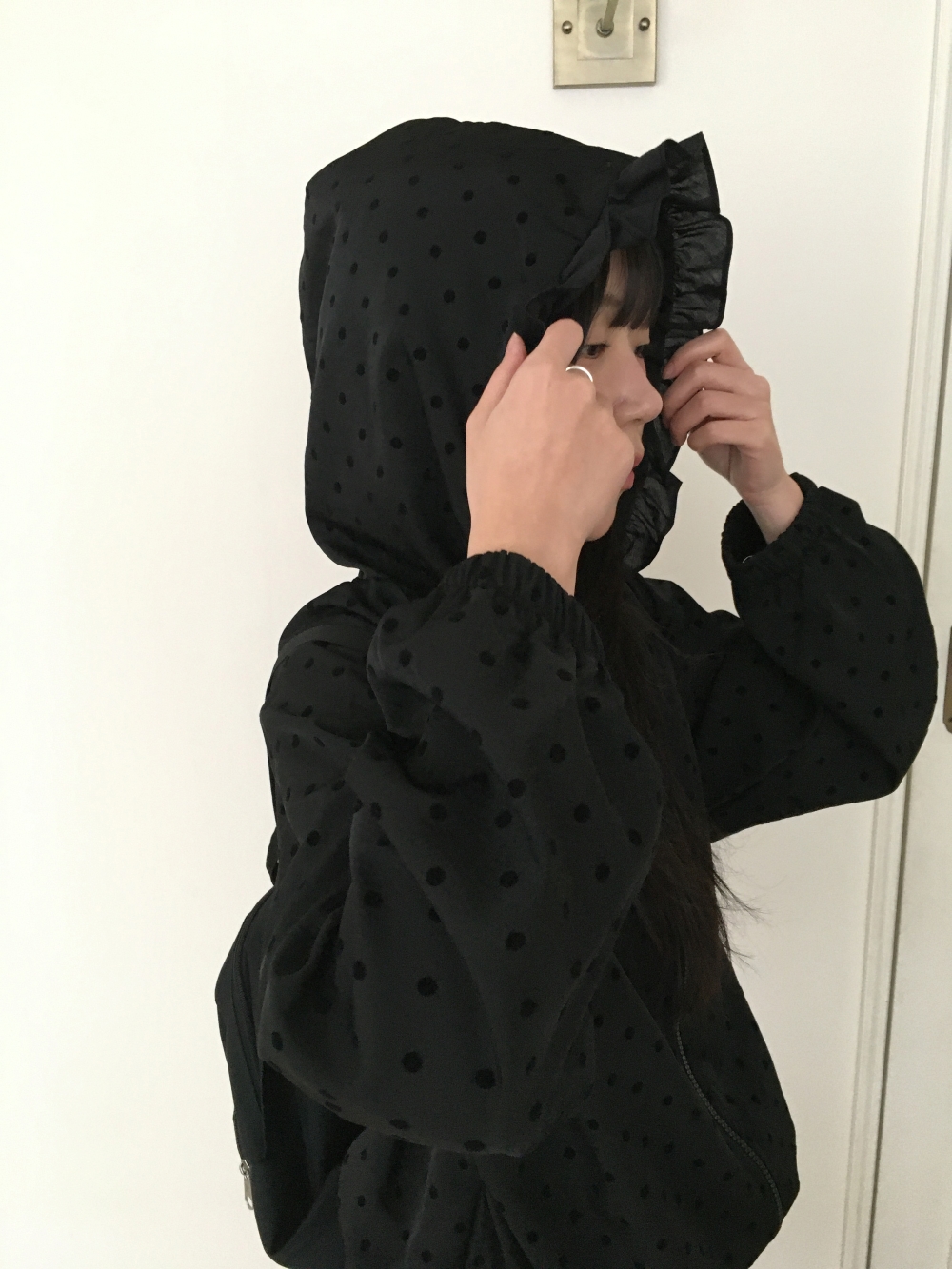[오늘출발!] 애티 벨벳 도트 프릴 후드 바람막이 자켓 2color