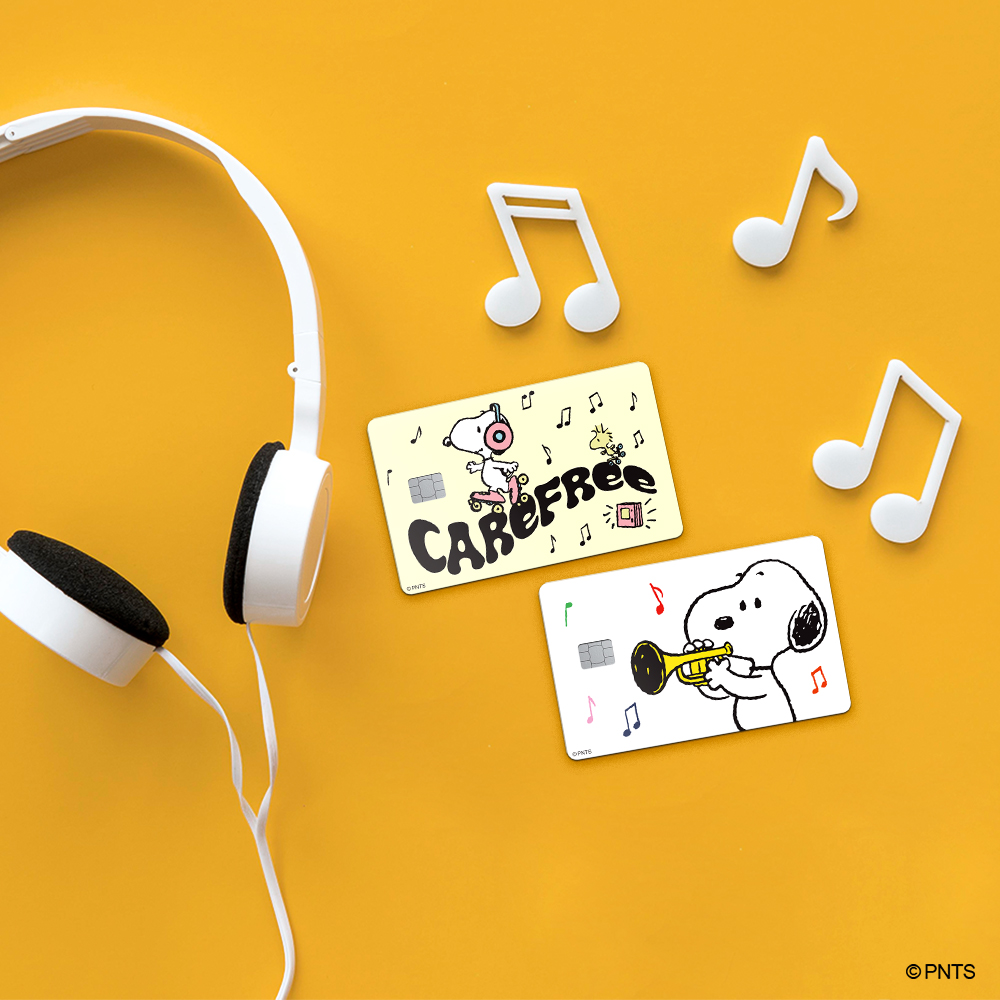 [1+1, 2매] 스누피 피너츠 운동 야구 테니스 골프 일상 음악 플레잉카드 카드스티커 카드리폼 신용체크교통 기후동행카드 카드케이스