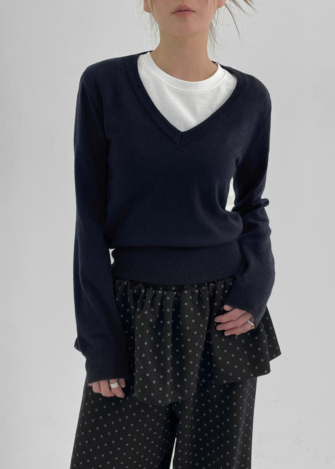 스탑트 브이넥 니트