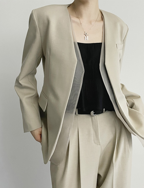 리브 쉬폰 레이어드 노카라 자켓 [2color]