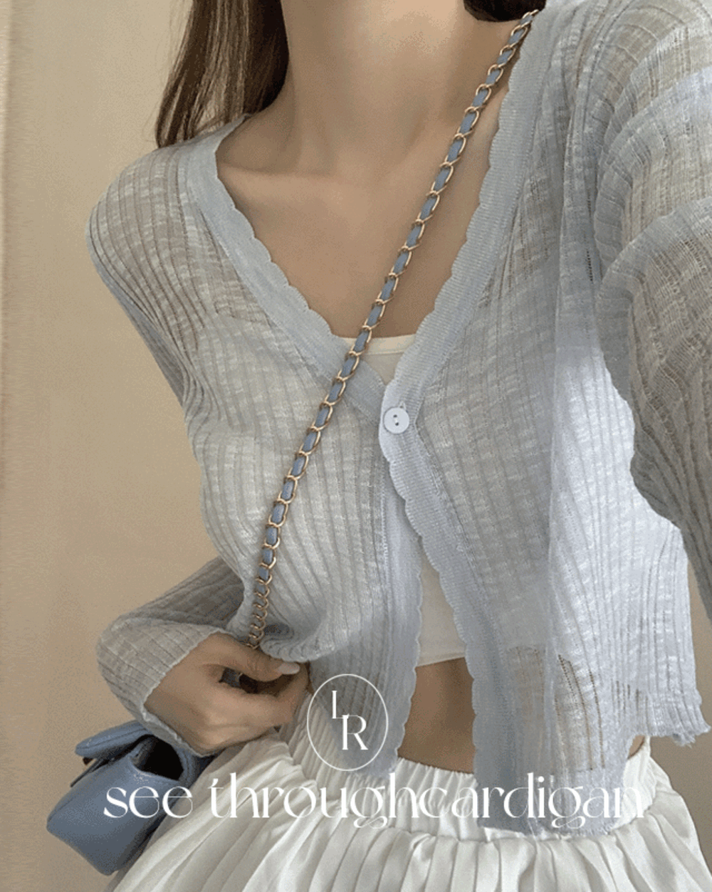 [고슬고슬착용감👍🏻/🚚당일출고] 엘라 시스루 골지 미니 가디건