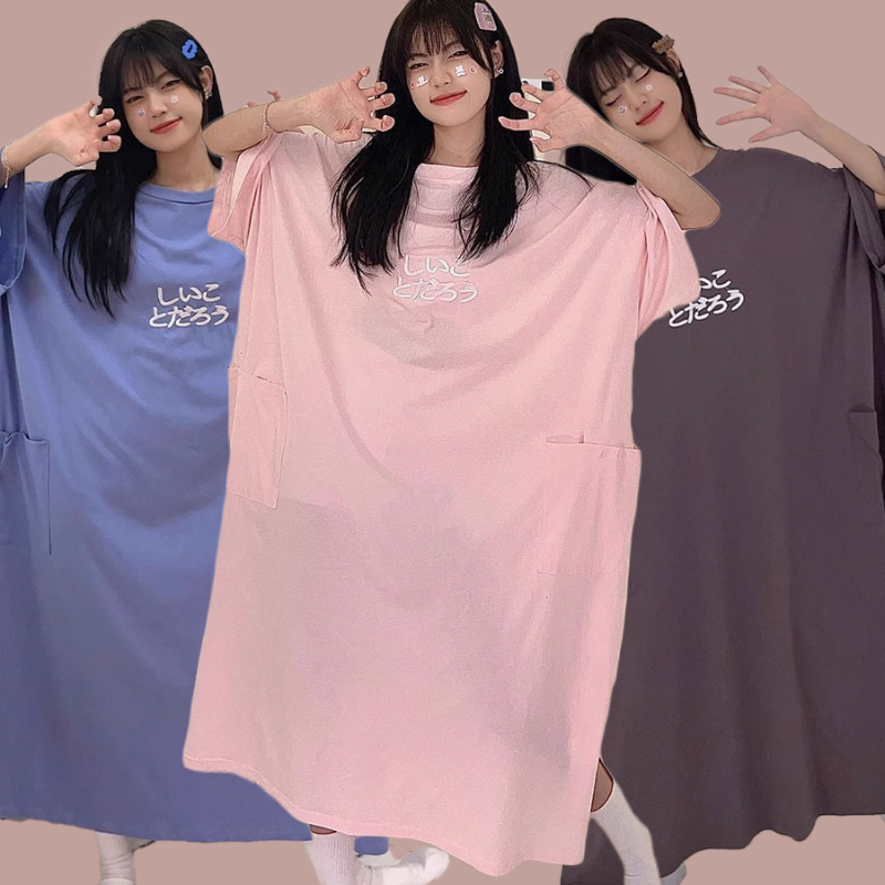 66-130 완전 박시핏 빅사이즈 롱 원피스 잠옷 편안한 홈웨어
