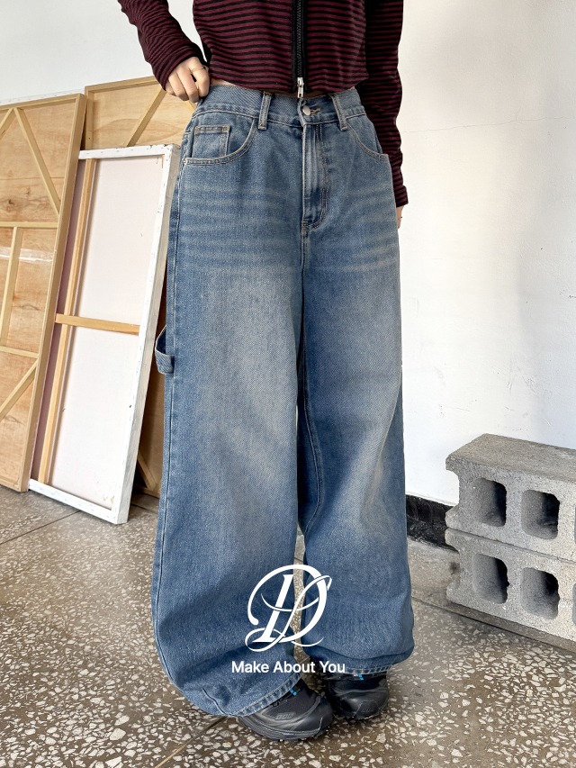 [MADE] 빅사이즈 M-4XL 딜런 팬던트 멀티 포켓 카펜터 와이드 뒷밴딩 워싱 데님 팬츠 청바지