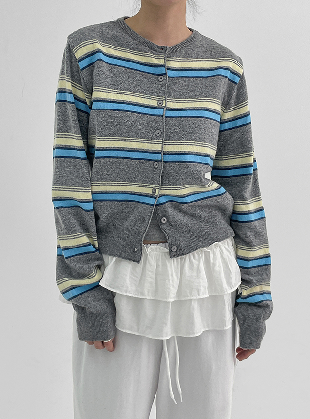 터킹 스트라이프 니트 라운드 가디건