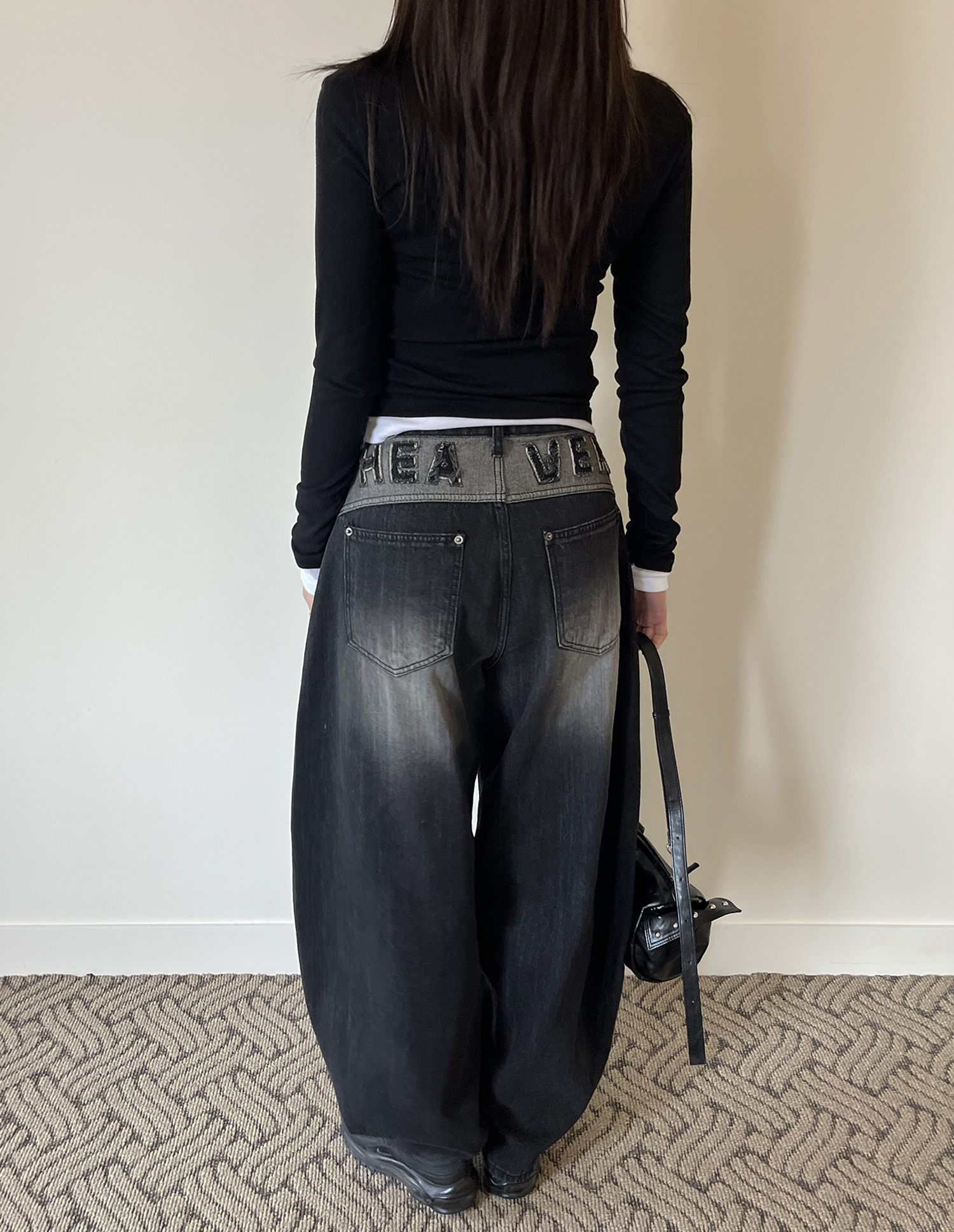 헤브 패치 벌룬 와이드 데님 팬츠 1 color