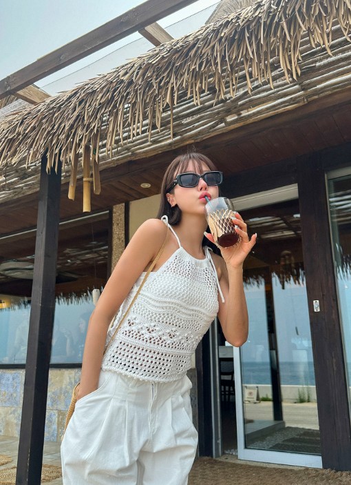 [부유방커버💛]블리 니트 홀터 나시 비치웨어 여름나시 니트나시 홀터넥나시 호캉스 여행룩 동남아 휴양지룩 바캉스 비치상의 커버업 체형커버