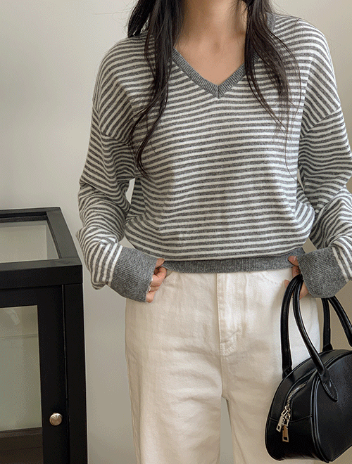 [기획특가]앤피 스트라이프 브이넥 니트 (데일리룩/나들이룩/봄니트/브이넥니트/스트라이프니트/레이어드니트)