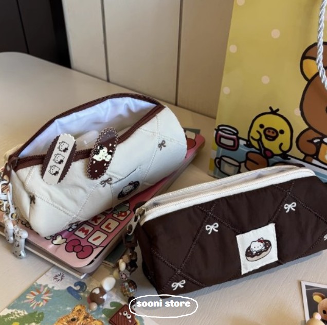 누빔 리본 천 필통 발레코어 키티 필통 귀여운필통 파우치 대용량 파우치 필통
