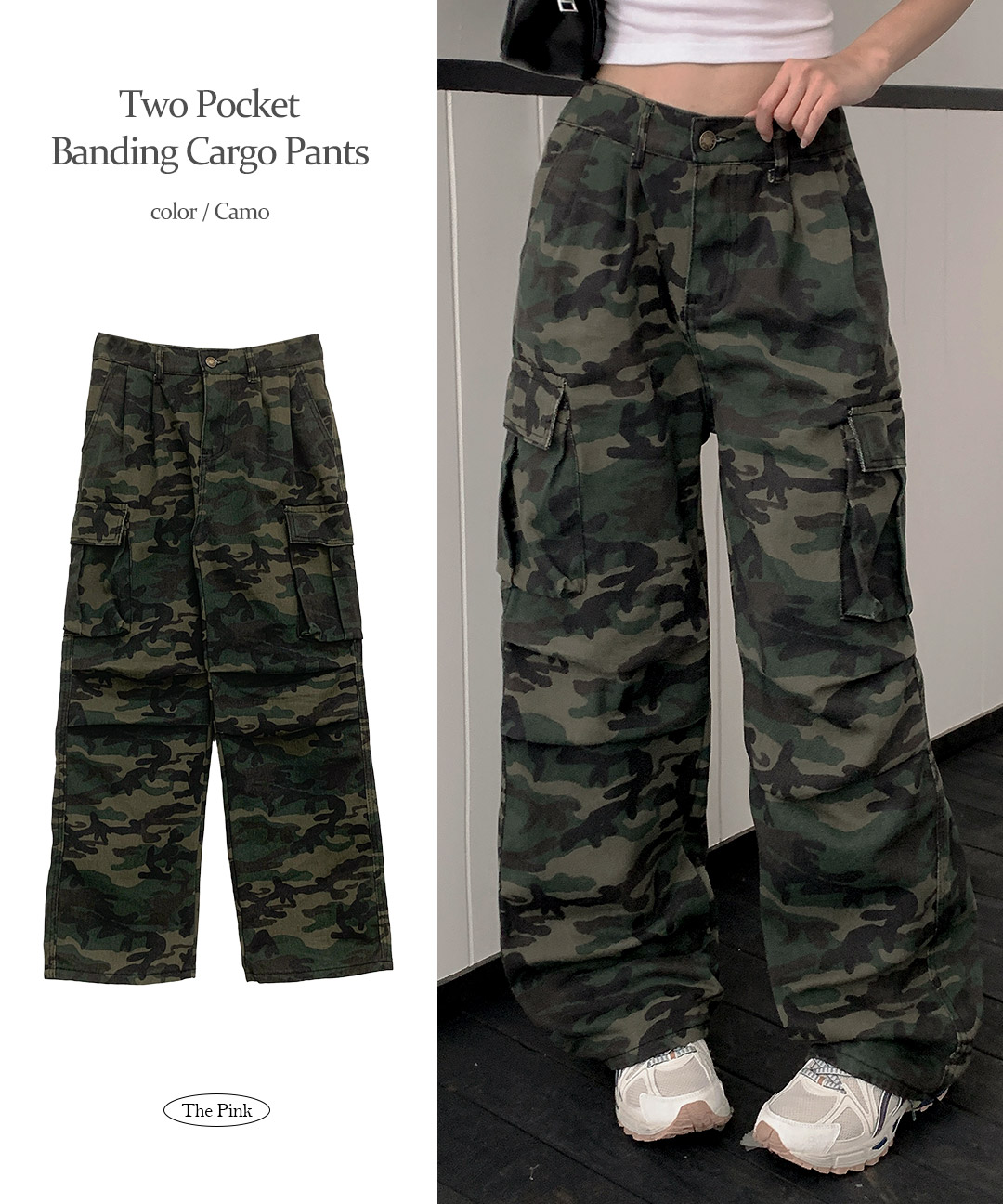 [y2k템!/스트릿힙] 멜립 카모 핀턱 뒷밴딩 카고 와이드 팬츠