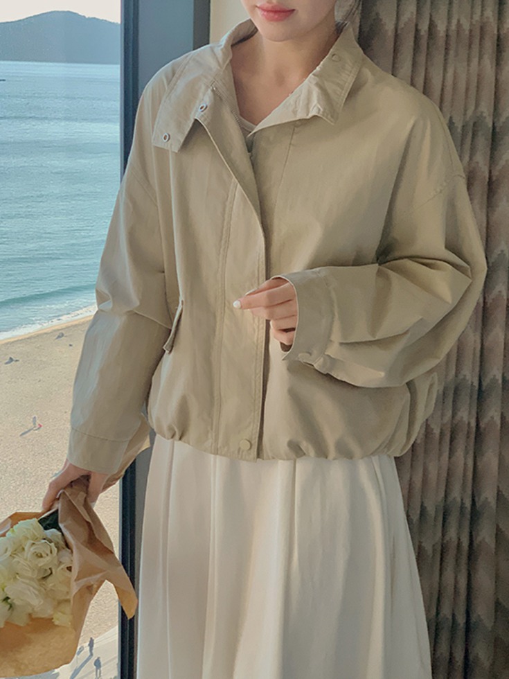 [44-110] 베이니듀 바스락 하이넥 야상 점퍼 (봄-신상-데일리룩-여행룩-빅사이즈-봄잠바-봄점퍼-봄아우터-캐주얼룩-루즈핏-베이직-나일론-바스락)