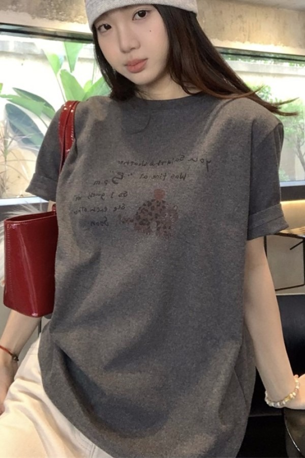 고양이 프린팅 라운드넥 반팔 루즈핏 티셔츠