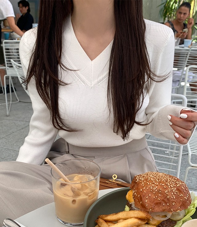 멜 브이넥 골지긴팔니트(6color) [무지 이너 레이어드 핑크 소프트 간절기 스탠다드 스웨터]