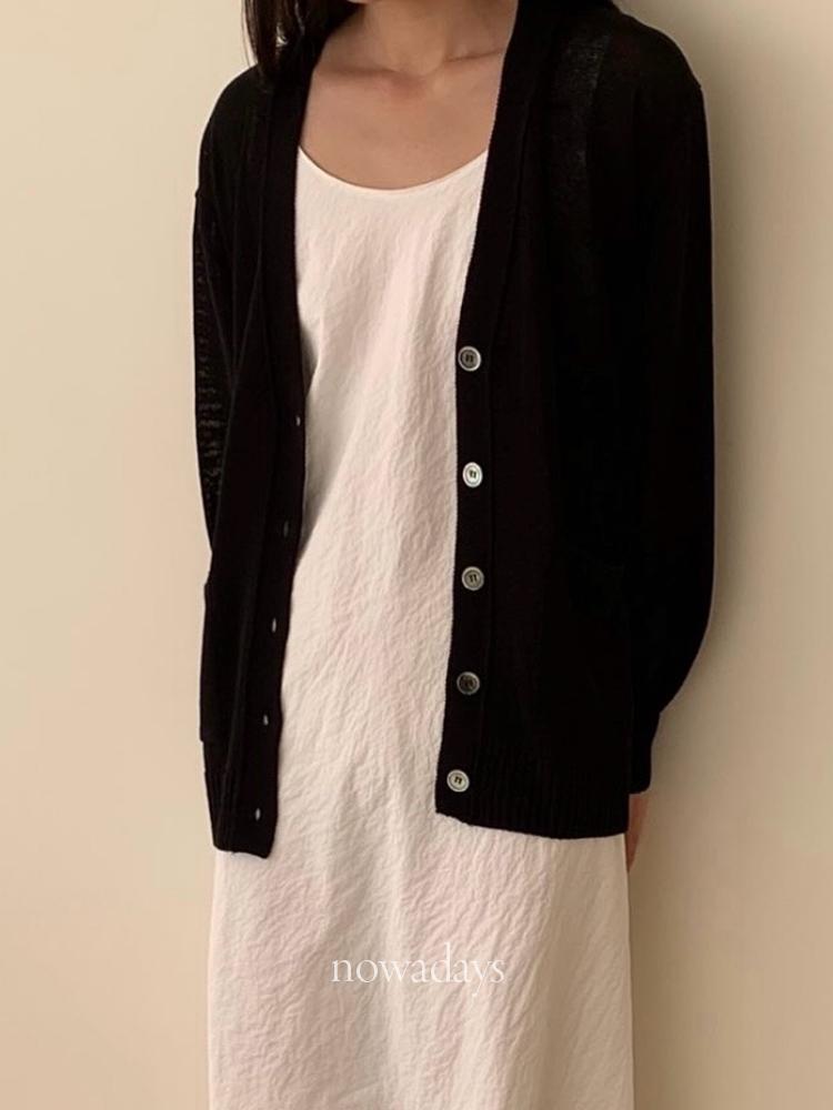monique 모니크 린넨 루즈 가디건 브이넥 포켓 니트 cd (3col)