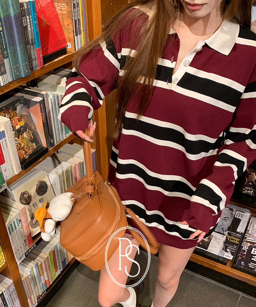 스트라이프 폴로 럭비 카라 버튼 티셔츠