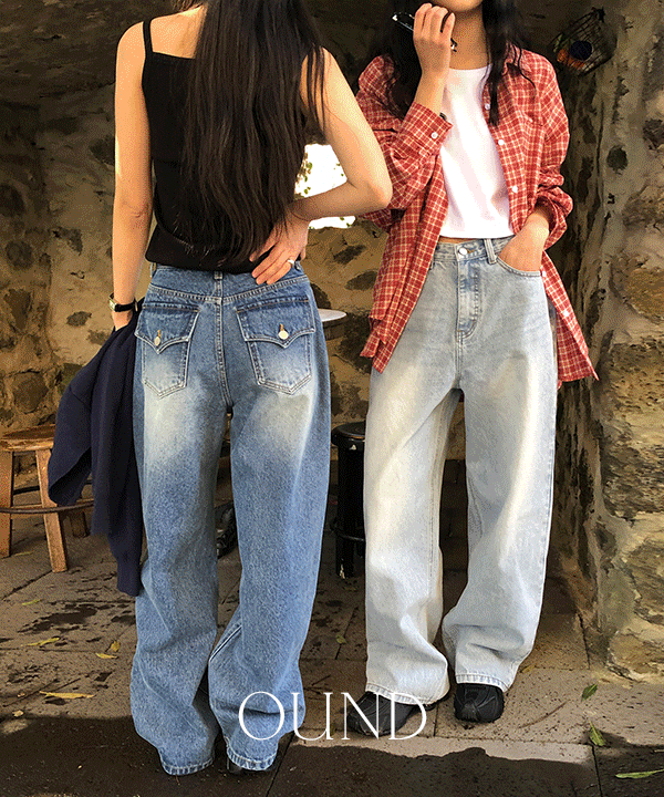 🎬 [made/4size] 온트 뒷포켓 와이드 코튼 데님 팬츠 -4color (데님팬츠/와이드팬츠/세미와이드/뒷포켓팬츠/코튼팬츠/데일리룩/포켓팬츠/S-XL)