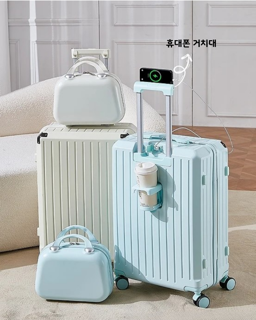 USB 충전 20인치 파스텔톤 모던 캐리어 기내용 수화물용 컵홀더 거치대