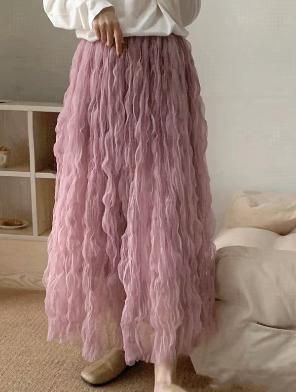 [벚꽃룩🌸] 플루 샤랄라 프릴 샤 롱스커트 SK2610봄 간절기 여름 밴딩 A라인 러플 너플 레이스 맥시 캉캉 여행 휴가룩 페스티벌룩 축제룩 벚꽃룩 나들이룩
