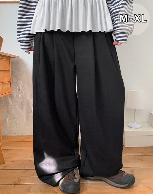[unisex] 키뎀 핀턱 밴딩 와이드 슬랙스 (2color)