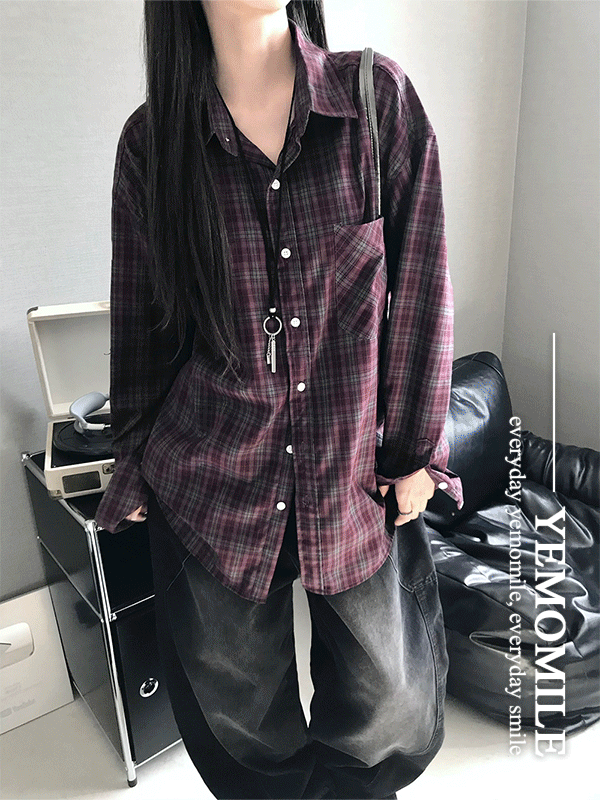 앤디 포켓 버튼 체크 셔츠 (unisex)