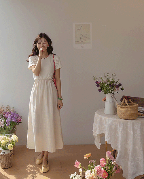 [LABEL] 셀레나 반소매 레이어드 롱 원피스 [size:F(55~66)]