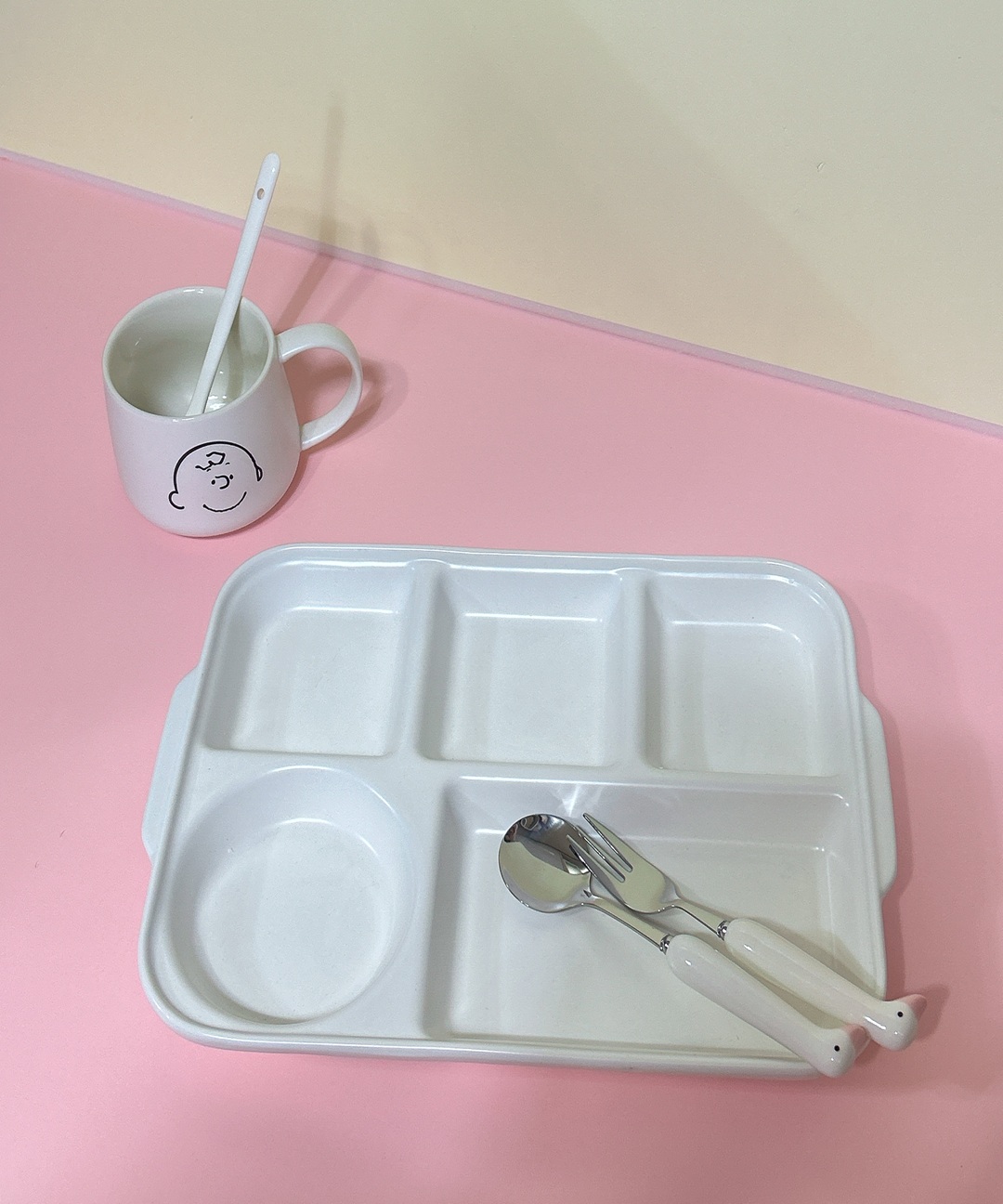 세라믹 식판 스푼세트 머그컵 포함 화이트 식기 오리 포크 숟가락