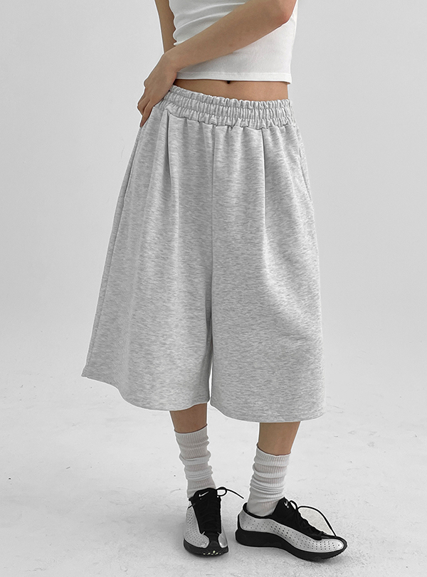 (UNISEX) 허깅 핀턱 버뮤다 밴딩팬츠