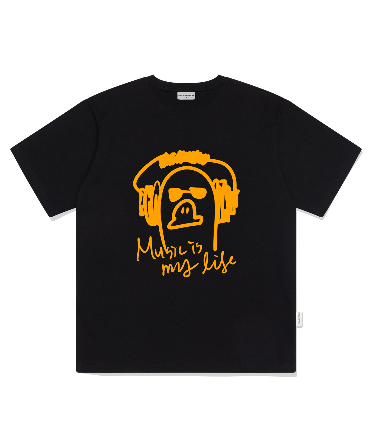 뮤직이즈마이라이프 프린트 오버핏 반팔티 블랙