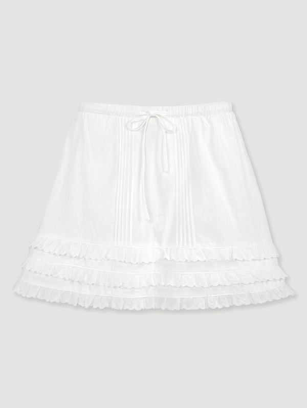 [단독기획/레이어드/휴양지/여름] 카푸 프릴 레이스 밴딩 미니 스커트(안감바지) - 2color
