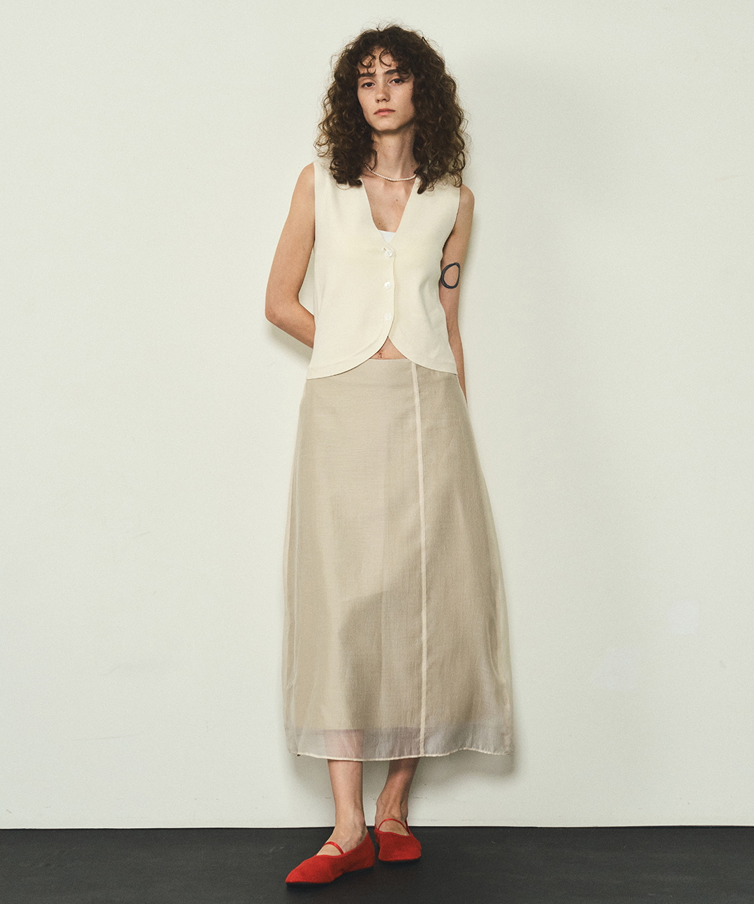See-through Layered Skirts_CTS608(Beige)