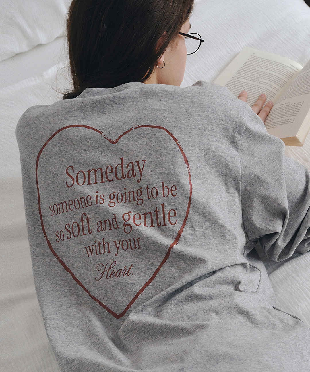 하트 레터링 롱 슬리브 티셔츠 - 2color