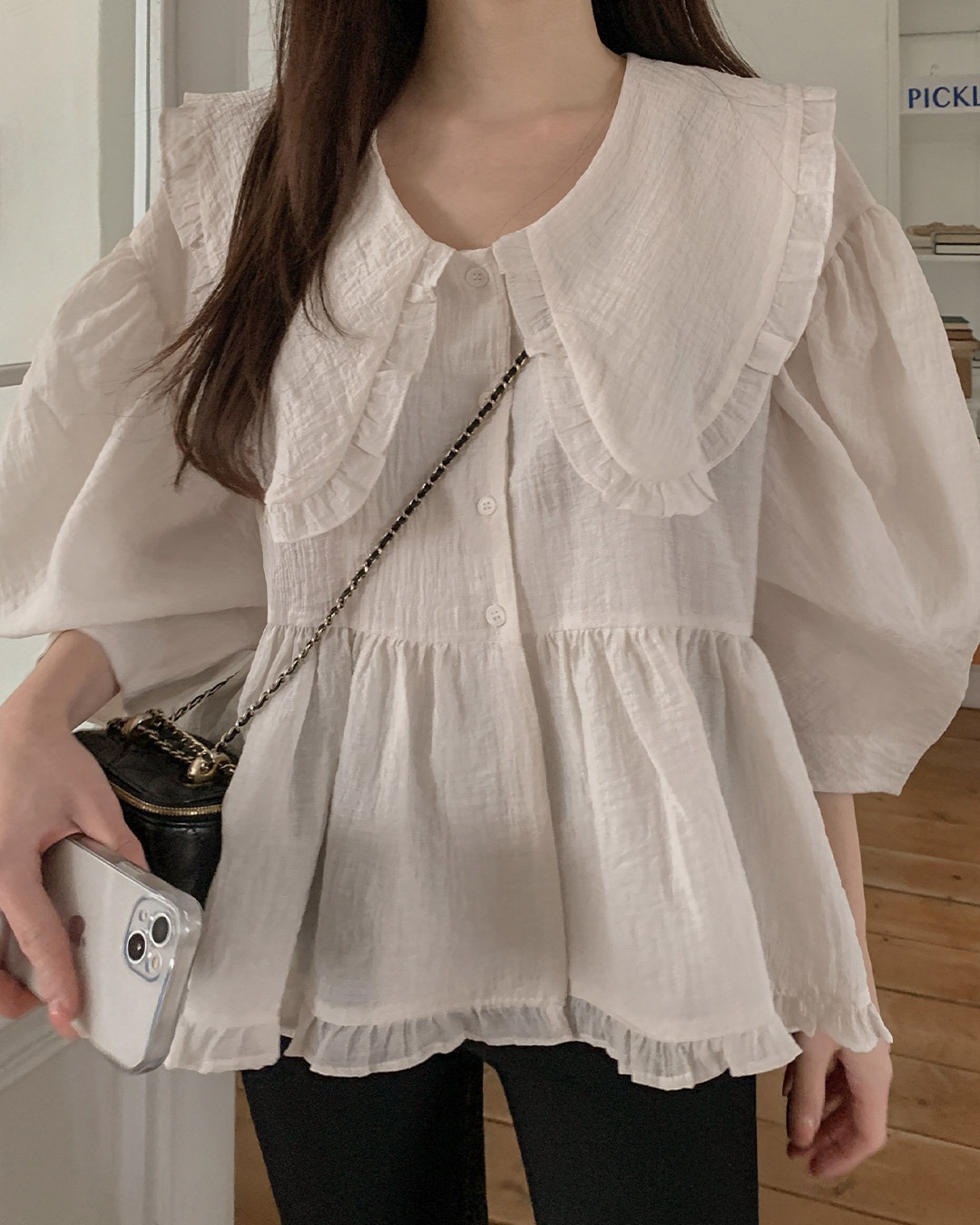 에버 세일러 프릴 블라우스(봄 봄상의 블라우스 프릴블라우스 오버핏 루즈핏 세일러카라 세라블라우스 데일리룩 데이트룩 청순 꾸안꾸 벚꽃룩)