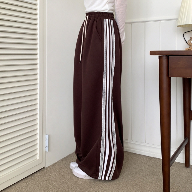 [고퀄리티❣/허리밴딩] 프로미 레이스 트랙 라인 바지 러블리 힙무드 와이드 롱 트레이닝 팬츠