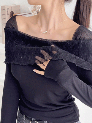 목선과 쇄골이 예쁘게 드러나는 스퀘어넥 레이스 오프숄더 티셔츠
