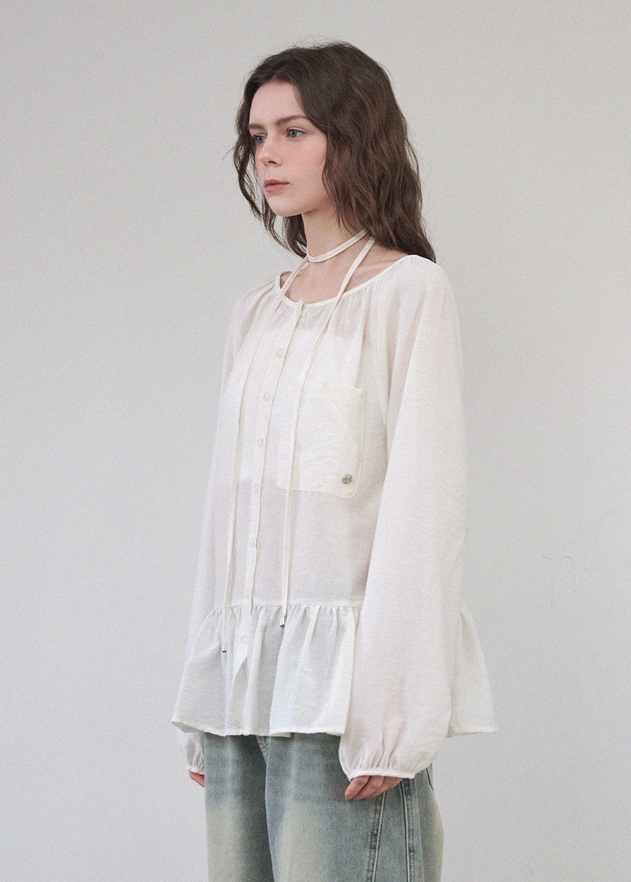 [44-120] Boo Frill Tie Blouse 부 프릴 타이 블라우스 (봄-데일리룩-캐주얼룩-하객룩-데이트룩-꽃놀이룩-프릴-타이-블라우스-긴팔-빅사이즈-자체제작)