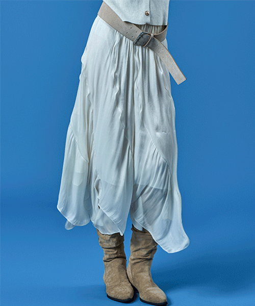 🩵미야오 착용,쫀쫀밴딩🩵쉬폰 플레어 언발란스 롱스커트 [2colors]