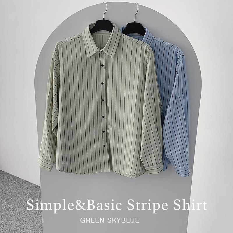 [마미] 로페 스트라이프 카라 긴팔 셔츠