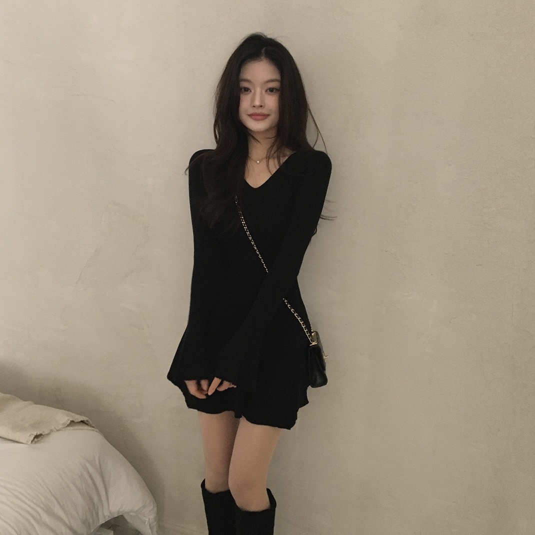 [문의폭주] 번따룩 슬림 브이넥 골지 미니원피스 - ops
